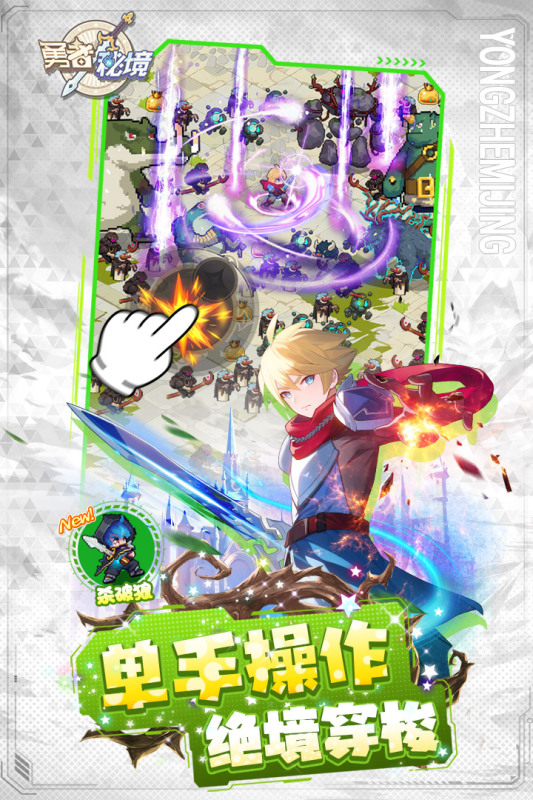 欢迎各位冒险者来到秘境,在这里你会遇上的一切,都是未知... 《勇者秘境》是一款生存动作Roguelike游戏。在无尽兽潮中极限走位、疯狂拉扯,在随机秘宝与技能池中妥善选择,不断击杀怪物升级壮大自己。最终,开启猎杀时刻,清空全场!